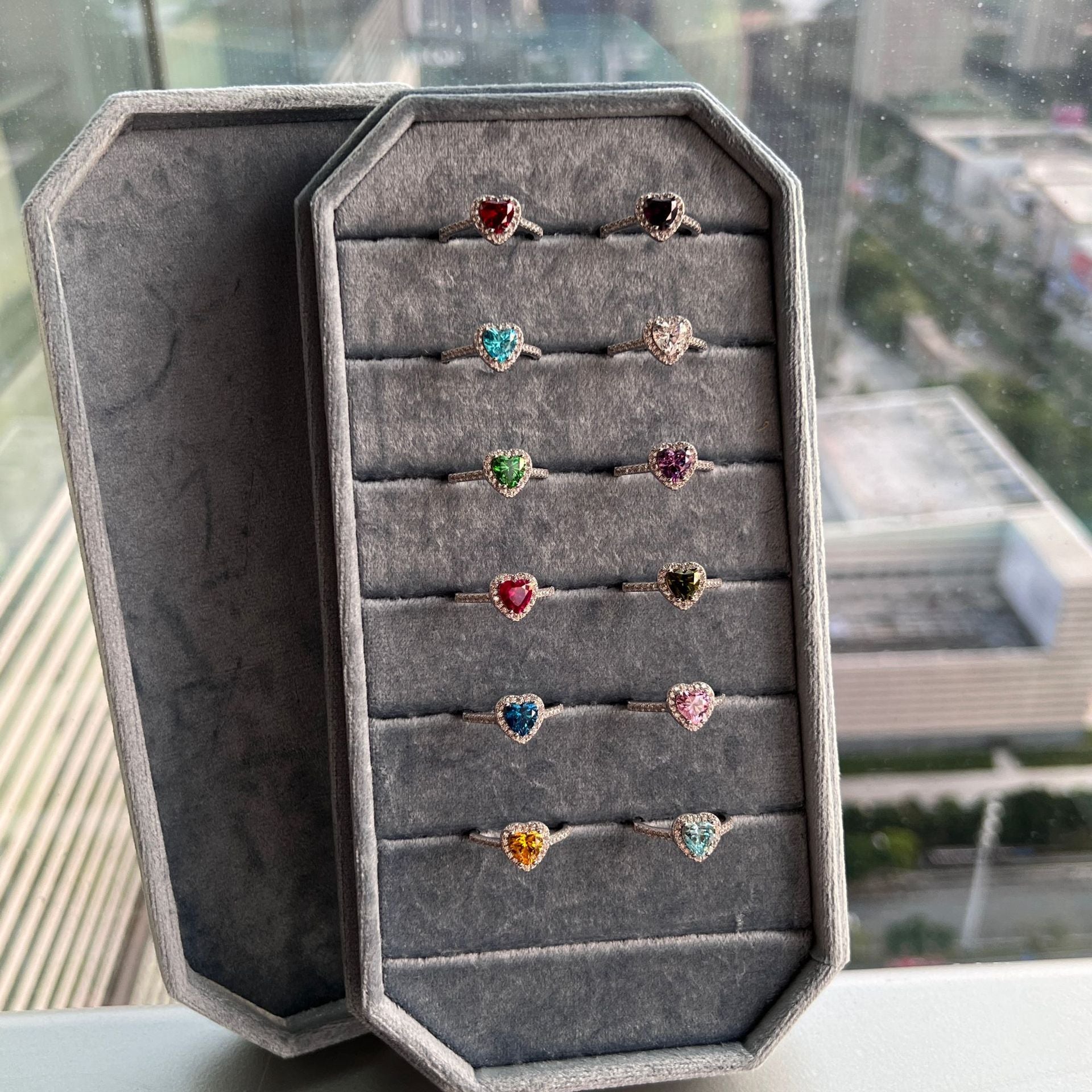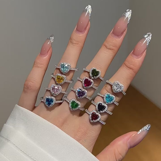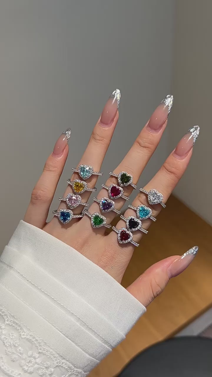 OliyaDesign 925 Sterling Silver Heart/Square/Pear Shape Rings for Women Created Gemstone Engagement Birthday Party Jewerly